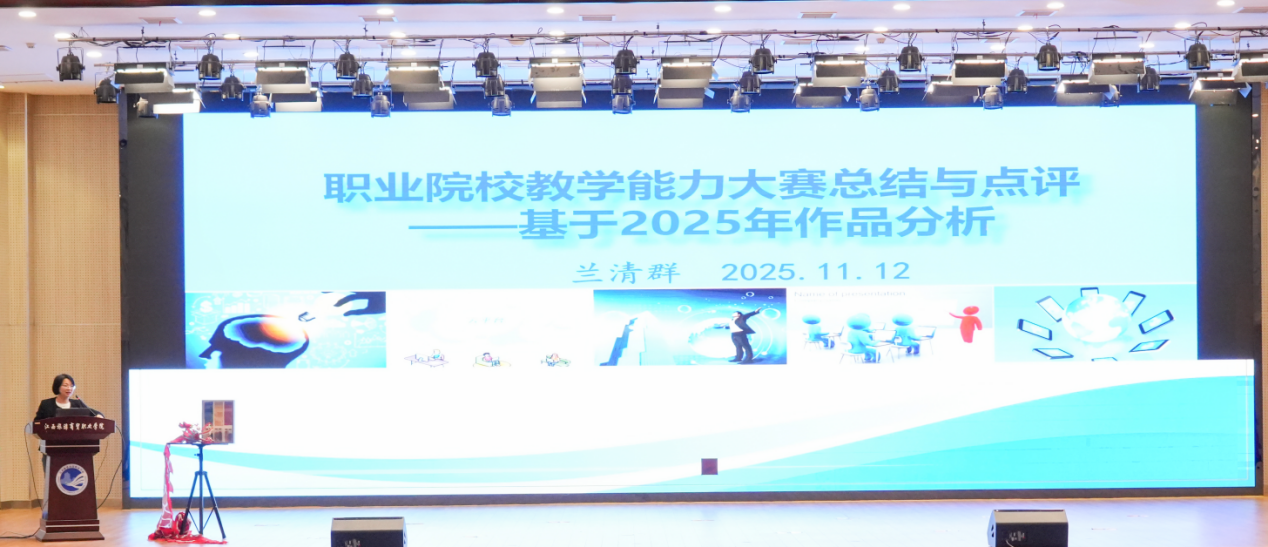 为深化 “三教改革”、赋能教师专业成长,切实以赛促教、以赛促研,2025 年 11 月 12 日下午,教务处牵头在产教融合大楼一楼学术报告厅成功举办 “丁香讲堂”・2025 年教学能力比赛作品点评及备赛策略分享会。本次活动兼具双重身份 —— 既是 2024-2025 学年教学能力比赛的总结会,也是 2025-2026 学年校赛的启动会,特邀杭州科技职业技术学院兰清群教授莅临指导,学校党委委员、副校长龙婷出席,全校教学管理人员及 300 余名专兼职教师齐聚一堂,共探教学创新与提质新路径。