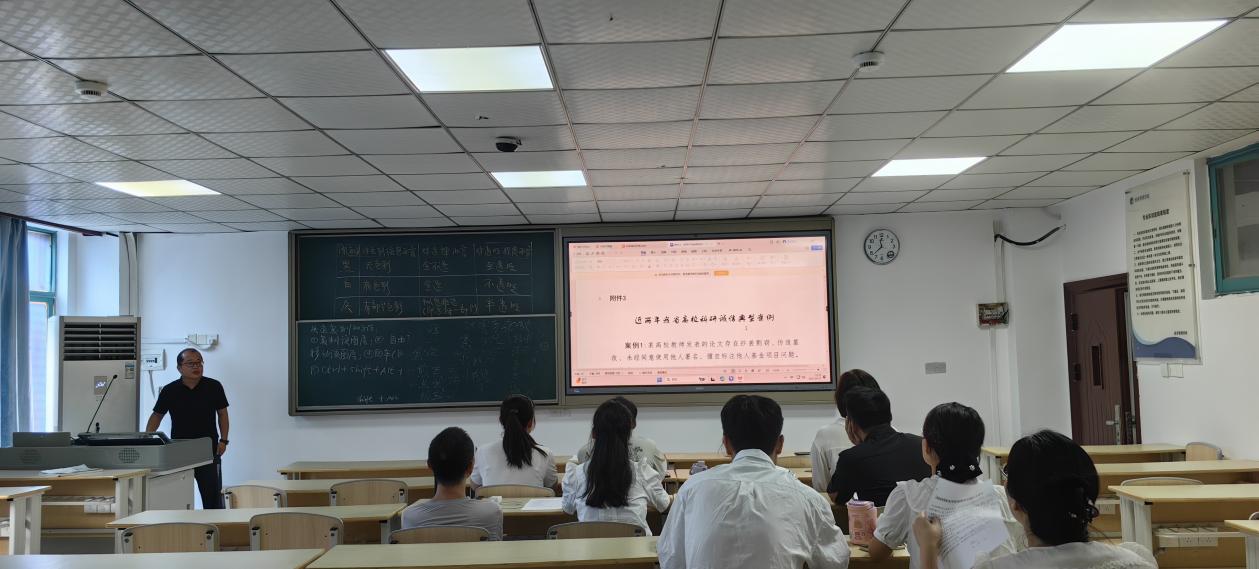 随后,专业负责人黄黎老师结合《近两年我省高校科研诚信典型案例》,带领教师学习 “论文抄袭剽窃”“引用未标注来源”“核查材料信息错误” 等典型案例,剖析违规后果,提醒教师注重科研材料真实性与细节严谨性,以案为鉴强化诚信意识。