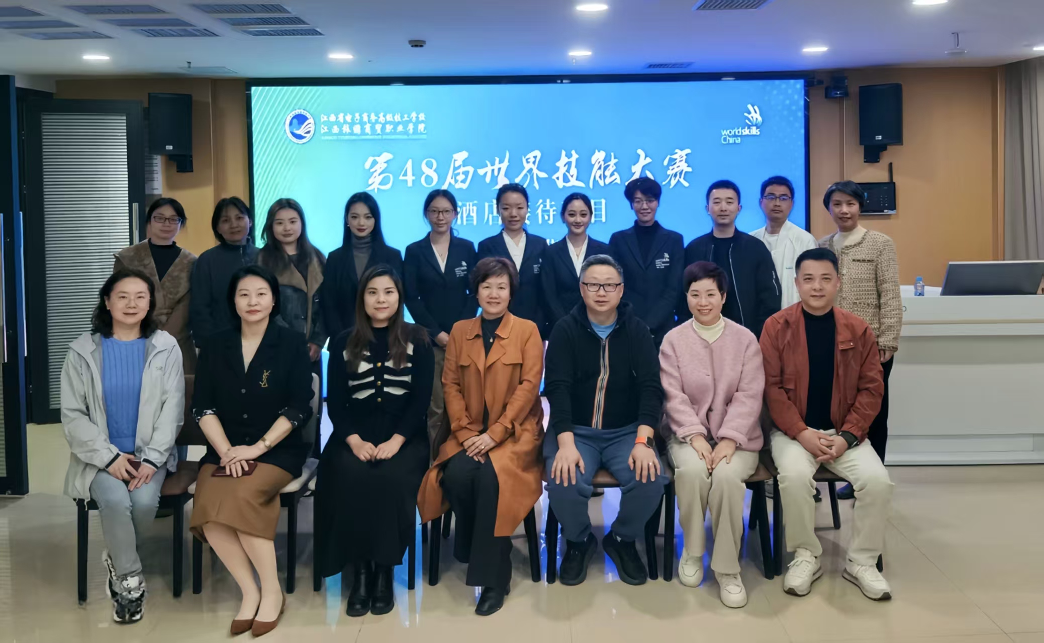 为全力备战第48届世界技能大赛,锤炼酒店接待项目选手专业技能与综合素养,2026年3月13日至17日,第48届世界技能大赛酒店接待项目国家集训队第四轮走训工作在我校顺利举行,本次集训由旅游学院酒店管理教研室承办。酒店接待项目国家集训队专家组组长胡晓博士带领5名集训选手及教练团队齐聚江西基地,开展为期5天的集中备赛训练,以专业实训打磨技能,以系统指导蓄力冲刺。