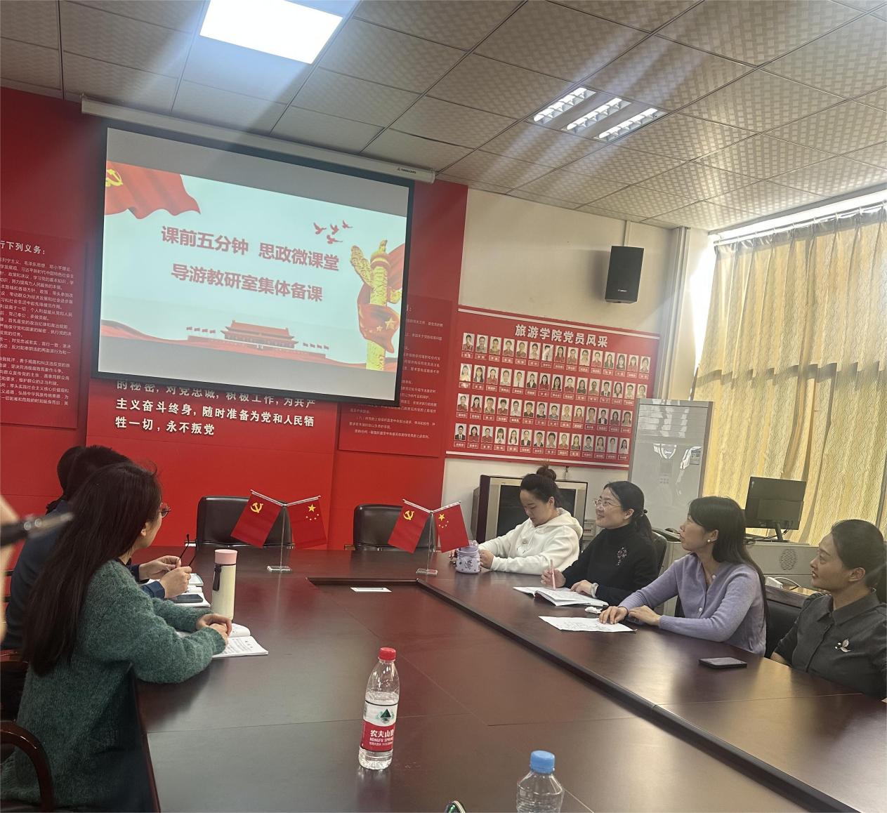 为落实立德树人根本任务,持续推进职业院校教育教学改革,加强课程思政建设,根据旅游学院党总支《关于开展课程思政集体备课的通知》要求,2023年11月22日,导游教研室在六教306党员活动室开展“课前五分钟,思政微课堂”集体备课活动。