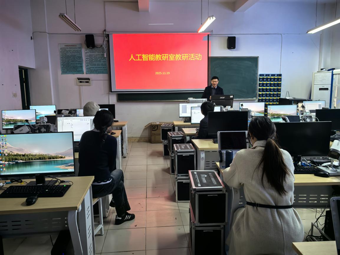 为深入贯彻落实教育数字化转型战略,推动人工智能技术与专业教学深度融合,提升课堂教学质量与人才培养实效,11月19日,人工智能教研室在机电楼409以“AI 赋能专业教学”为主题开展教学研讨活动。教研室全体教师参会,围绕 AI 技术在课程设计、教学实施、评价改革等方面的应用展开深入交流,凝聚育人共识,共探教学创新新路径。