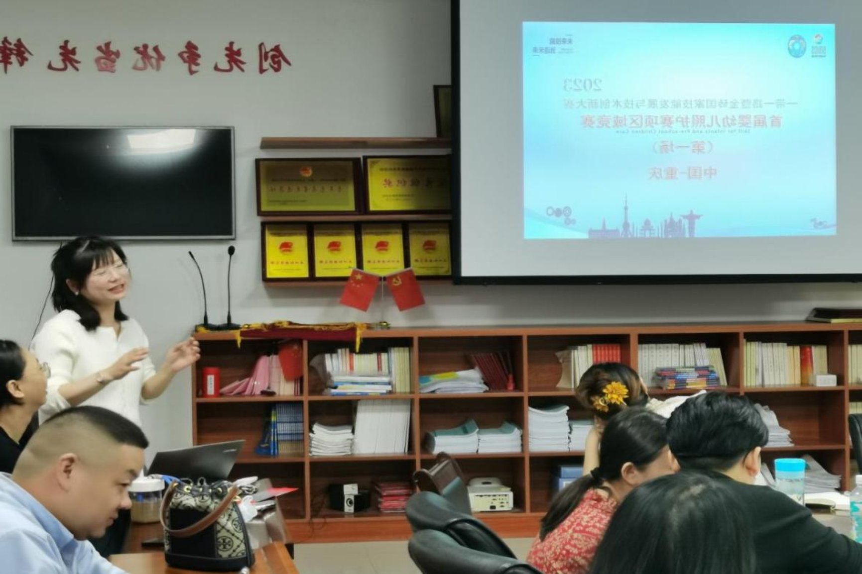 2023年10月21日一带一路暨金砖国家技能发展与技术创新大赛首届婴幼儿照护赛项区域竞赛第一场在重庆开赛,早教与托育教研室专职教师章璐瑶老师有幸被邀请前往执裁。11月2日,章璐瑶老师就执裁经历在教研室内进行了分享。