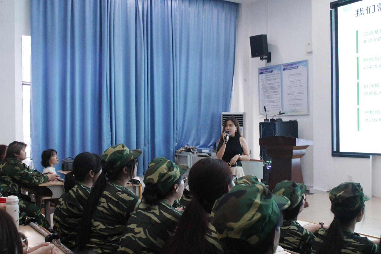 紧接着,王欣老师结合大学生活,向同学们介绍了在大学期间应当树立的目标和行之有效的学习方法,并推荐了不少能够显著提升学习效率的实用工具,令同学们受益匪多。最后,刘晶晶老师则着重介绍了本专业的特色第二课堂活动——“英语特训营”。她详细阐述了特训营的设立目的、丰富多样的活动方式以及多年来取得的丰硕成就,并鼓励全体新生积极参与到这项活动中,通过实践不断提升英语综合能力。