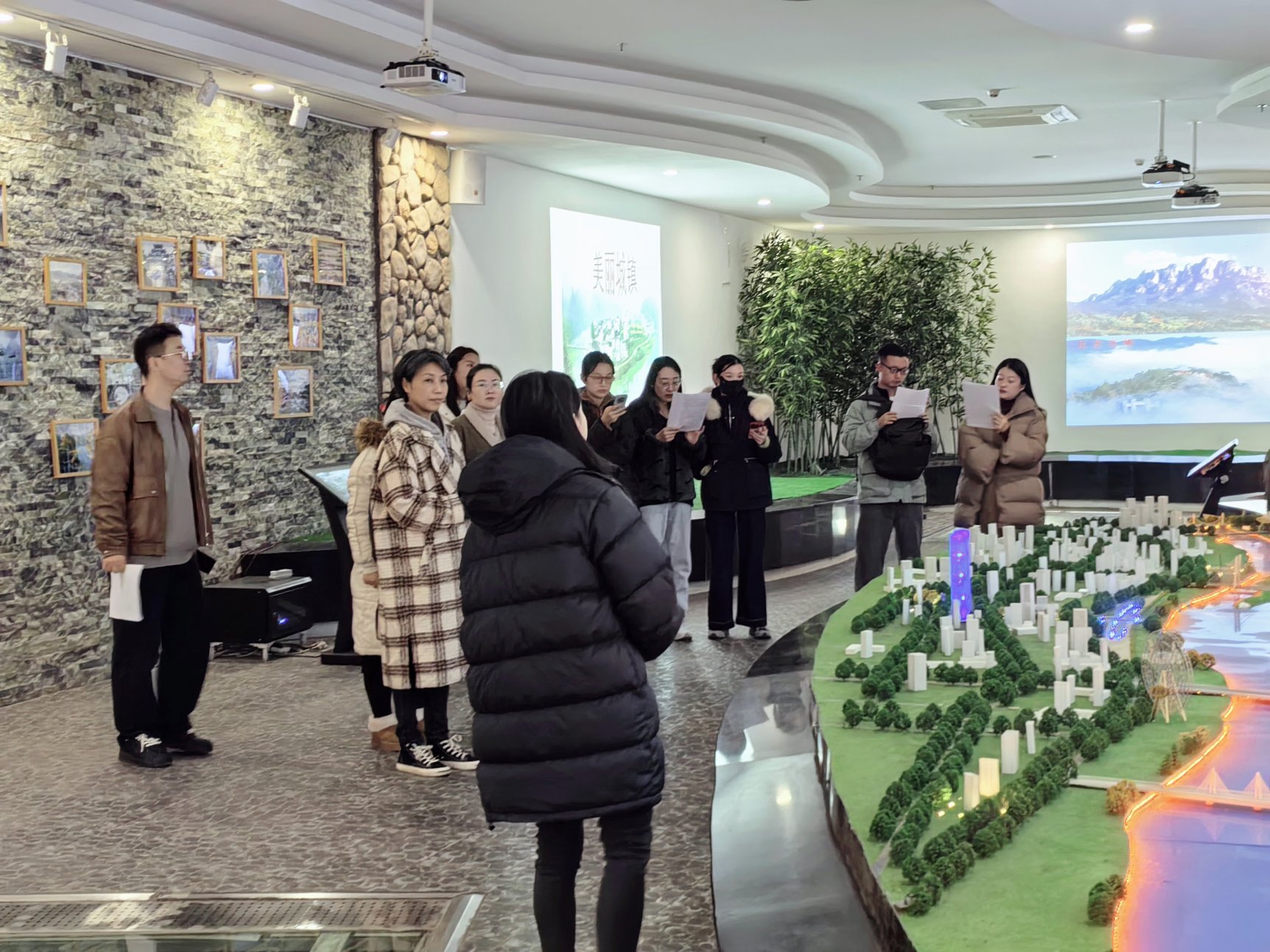 为深入贯彻新时代职业教育改革要求,深化专业教师实践认知,推动教学与服务实践深度融合,旅游学院导游教研室于12月22日下午在旅游实训大楼成功举办“江西风景独好”展厅讲解服务专题培训活动。学院副院长郑巍亲临现场指导,专职教师(刘欢、刘悦、李卓琪、夏媛媛、段辛欣、彭安琪、陈奇晃)及辅导员(李霏、李德芳、娄晨晖、薛飞)跨岗位、跨专业齐聚一堂,共学共进。本次培训以“夯实讲解功底、规范服务流程、提升育人效能”为核心,创新采用“实地观摩+模拟讲解+互动研讨”三维模式,精准聚焦景点讲解技巧、服务规范标准及应急处置能力三大核心模块。导游教研室主任刘欢老师结合多年一线实践经验,以“讲解如何实现‘有温度、有深度、有特色’”为核心命题,从讲解语言的节奏把控、情感融入技巧切入,针对文博场馆讲解的特殊性,重点拆解了走位设计与态势语运用的核心要点,并结合展厅的空间布局、展品陈列逻辑,系统传授了强化讲解感染力与专业性的实操方法。旅游管理教研室专职教师刘悦围绕“江西风景独好”展厅特色,分享实战讲解心得,拆解了不同展区的讲解主次与内容取舍技巧,如何让讲解既贴合展厅定位,又富有地域感染力。