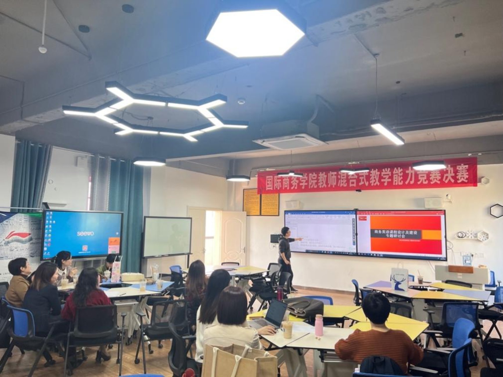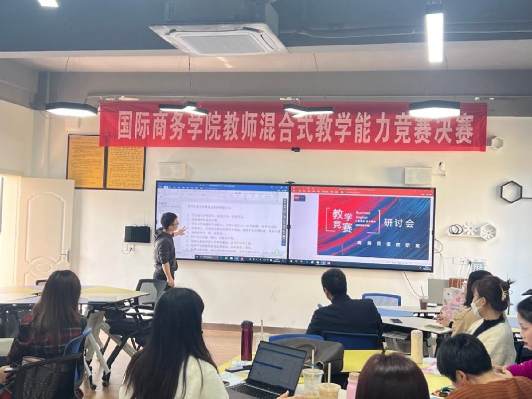此次教学培训和研讨会历时2个小时,全体商务英语教师积极参与,深入研讨,会议的成效显著。这也为本学期教师参加省级教学能力大赛获得优异成绩奠定了基础。(商务英语教研室 供稿)