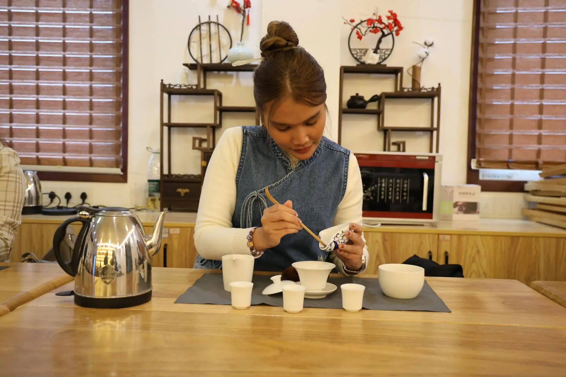 自由交流阶段,双方就“中文+职业技能”培养模式创新、物流专业课程共建、校企资源共享、留学生联合培养等议题深入对接,坦诚交流、凝聚共识,初步达成课程开发、短期交流等合作意向。座谈会后,泰方嘉宾沉浸式体验中华茶艺,在茶香中感受中华优秀传统文化,增进中泰师生情谊。