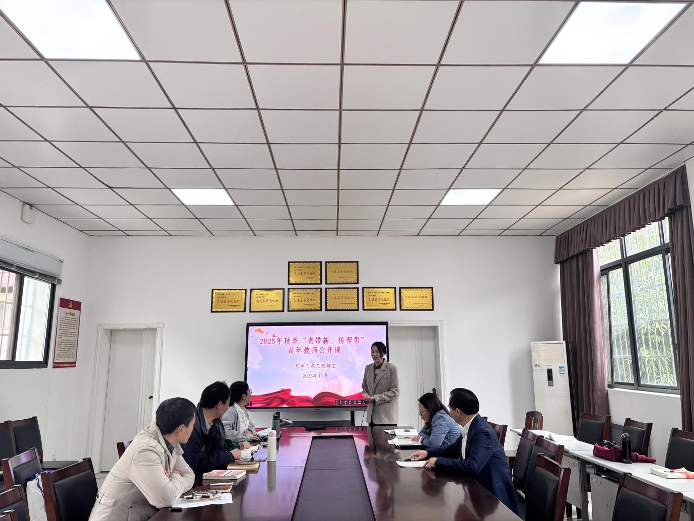 为精准把握2025年下半年形势与政策课程教学导向,扎实推进教师培养,传承优质教学经验,提升课程整体育人质量,11月5日,形势与政策(德育)教研室组织开展高校“形势与政策”课教学要点(2025年下辑)专题学习会暨2025年秋季“老带新、传帮带”教师公开课活动。活动由教研室主任主持,全程节奏紧凑、内容充实,取得了预期成效。