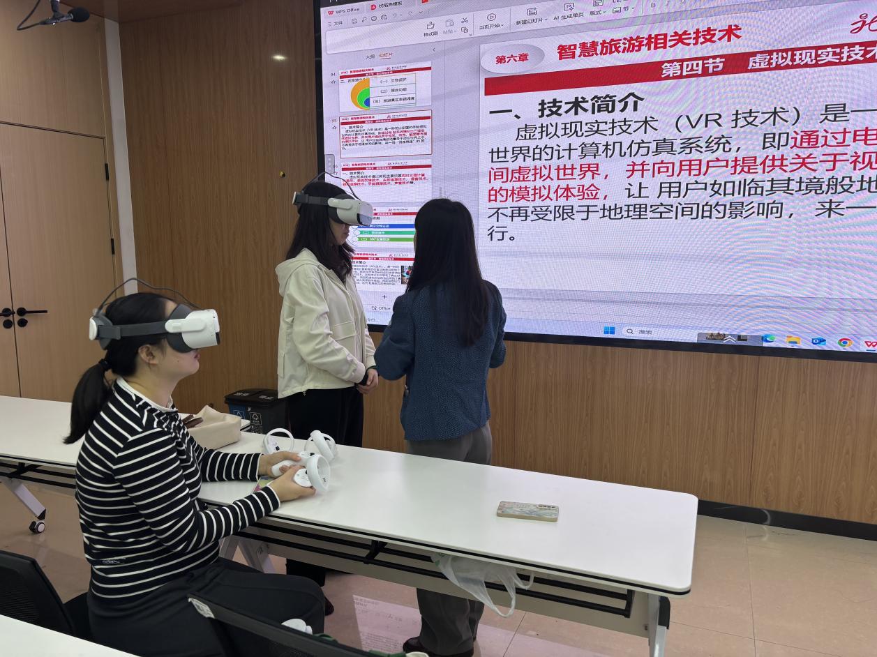 一堂VR公开课,不仅是一次教学方法的创新尝试,更是导游专业教学改革的生动缩影。近年来,导游教研室始终以行业需求为导向,通过“教师下企业练技能、企业专家进课堂传经验、新技术设备进实训”等举措,聚焦教学核心问题,持续推动教学内容、模式与评价体系的革新。未来,教研室将继续聚焦旅游行业新业态,培育更多掌握新技术、适应新岗位、符合新标准的高素质导游人才,为文旅产业高质量发展注入青春力量。(导游教研室 供稿)
