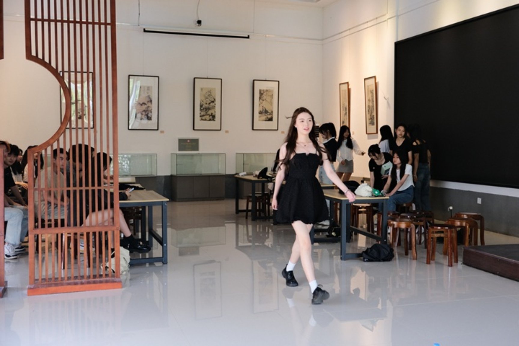 5月15日下午,模特们个个精神饱满、步履自信,以良好的精神面貌准备迎接即将开始的选拔,争取这次作品展演的机会。模特们在进行动态走秀及定点摆拍的展示后,由老师们选拔出合适的人选,随后进行21级服装毕业设计动态展预选赛。