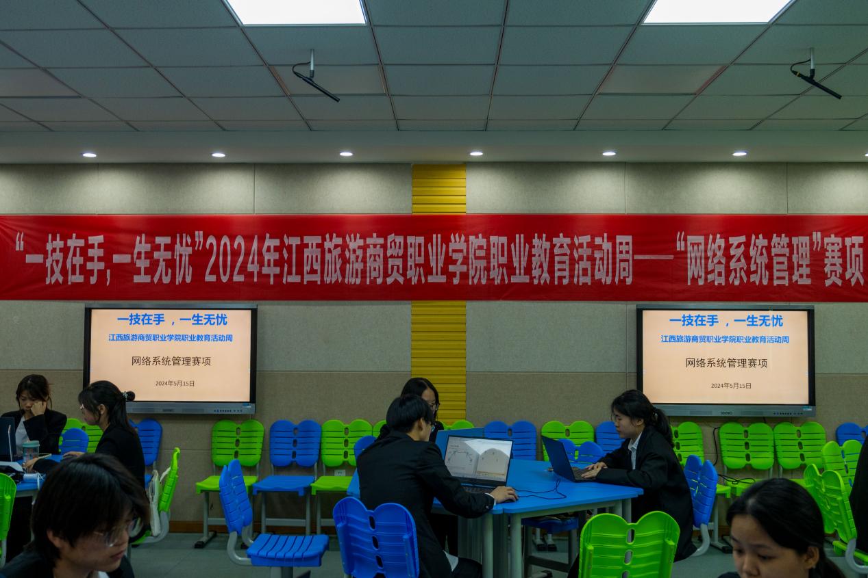 2024年5月15日,江西旅游商贸职业学院职业教育活动周如约而至。今年的活动周以“一技在手,一生无忧”为主题,倡导学生通过学习职业技能,为未来的职业生涯奠定坚实基础。当天下午,计算机软件教研室举办的“网络系统管理”赛项在第三教学楼205燃情开赛,吸引了来自计算机相关专业25名学生进行现场决赛。