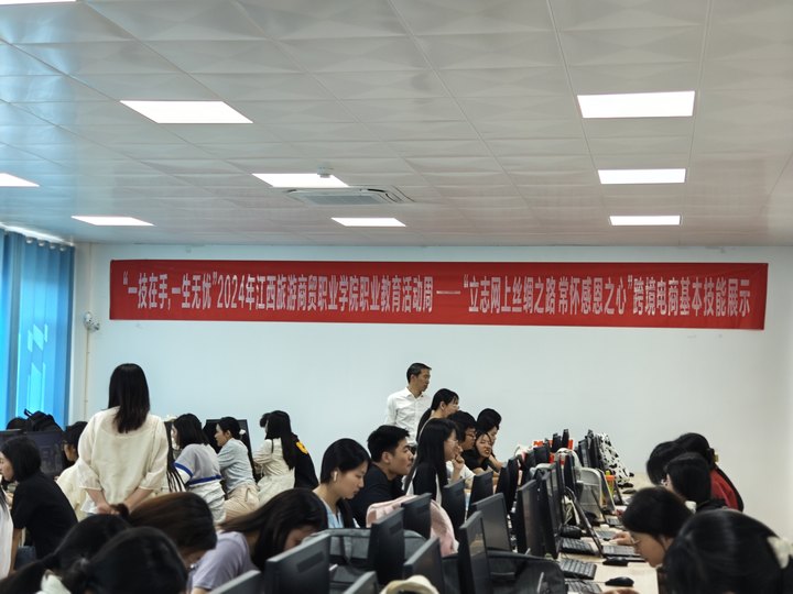 2024年江西旅游商贸职业学院职业教育活动周5月15日下午举行,国际商务学院国贸教研室组织跨境电子商务、国际经济与贸易(含中英合作)、电子商务(中英合作)商务英语等专业的优秀同学参加本次技能周活动。本次技能周活动旨在提升同学们的相关专业技能,加强理论与实践的结合,为未来的职业生涯奠定坚实基础。