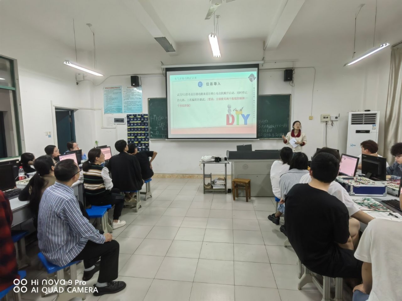张老师先针对实际生活中的案例对应于PLC中的操作引出本次任务内容,然后讲解了相关的沿脉冲指令格式及功能说明知识点,再结合知识点进行具体的任务实施,最后通过实践操作进行了任务演示,并对每位学生的实操进行提问点评,整个教学过程体现了理实一体化(边学边练)授课模式。在听课过程中,老师们认真倾听、进行课堂评价。课后,教研室教师对张影老师整堂课教学效果给与充分肯定,同时指导老师对本次课给与了点评,指出了不足之处。老师们也发表了各自的意见及建议,并借此机会进行互相交流授课心得,相互学习,取长补短。