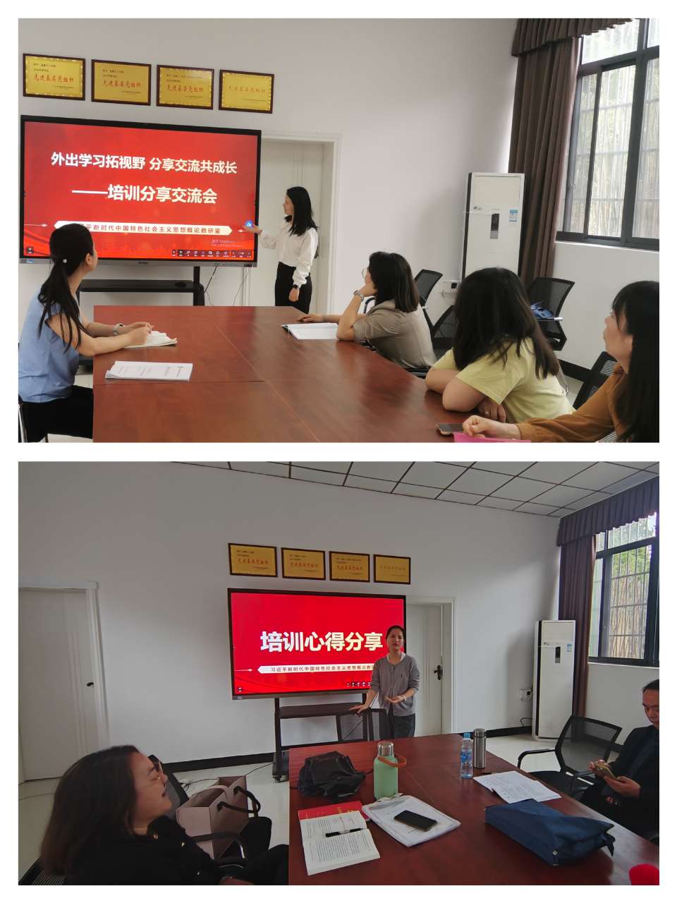 为了充分发挥外出培训教师学以致用的示范引领和辐射带动作用,将培训效果转化为推动工作的实效,实现学习资源共享,习近平新时代中国特色社会主义思想概论教研室于2024年4月17日和4月24日在马克思主义学院会议室举办了两场别开生面的培训分享交流会。会议由教研室主任邹海林主持。