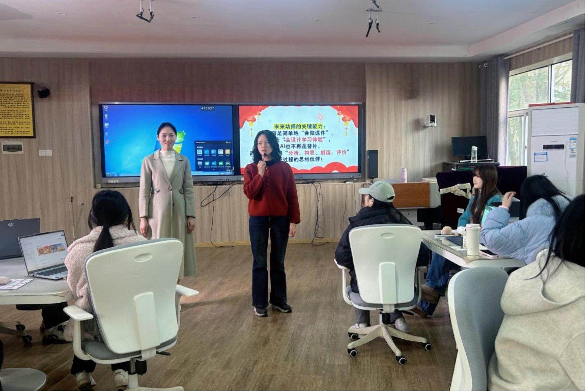 活动伊始,指导教师王维以精炼的开场白为课堂奠定了基调:“经过前期的学习,大家已经掌握了课件制作的基础思路和技巧,还能灵活用上一些简单的AI技能。那如何把课件设计的理念、实操技巧和AI素养融合起来,做出更贴合幼儿教学的课件呢?”这一提问精准指向了本次示范课的核心目标——超越工具层面,探索AI与教学设计深度融合的方法论。