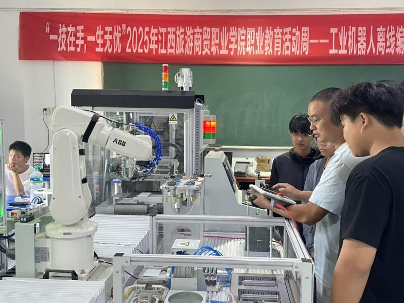 随后,骨干教师曹昌仁分享了工业机器人系统集成赛项的带赛经验,他表示:“本次比赛既能提升学生的技能水平,又能检验教师的专业知识。与全省各大高职院校乃至本科院校的师生同台竞技,不仅能让我们清晰认识到日常教学的不足,还能发现自身专业技能的短板,对师生的职业发展大有裨益。”