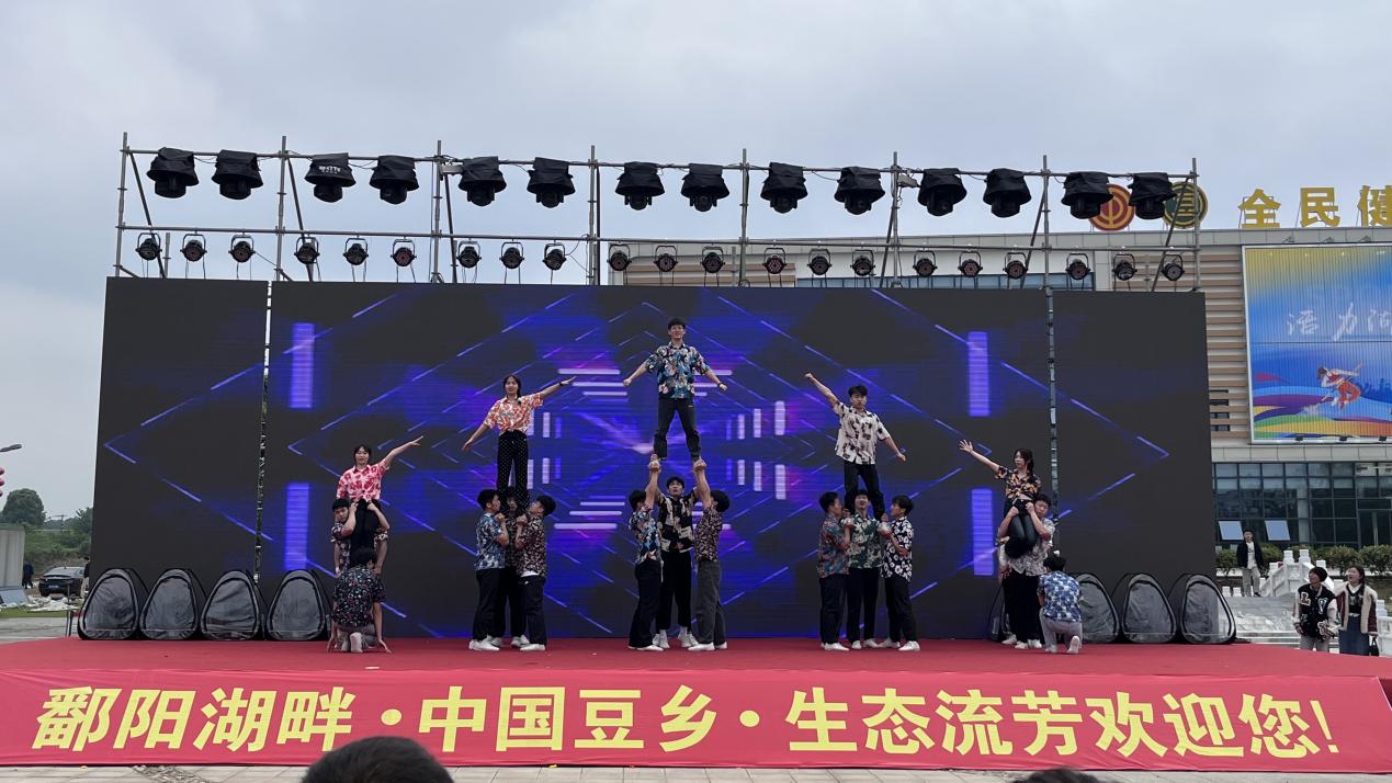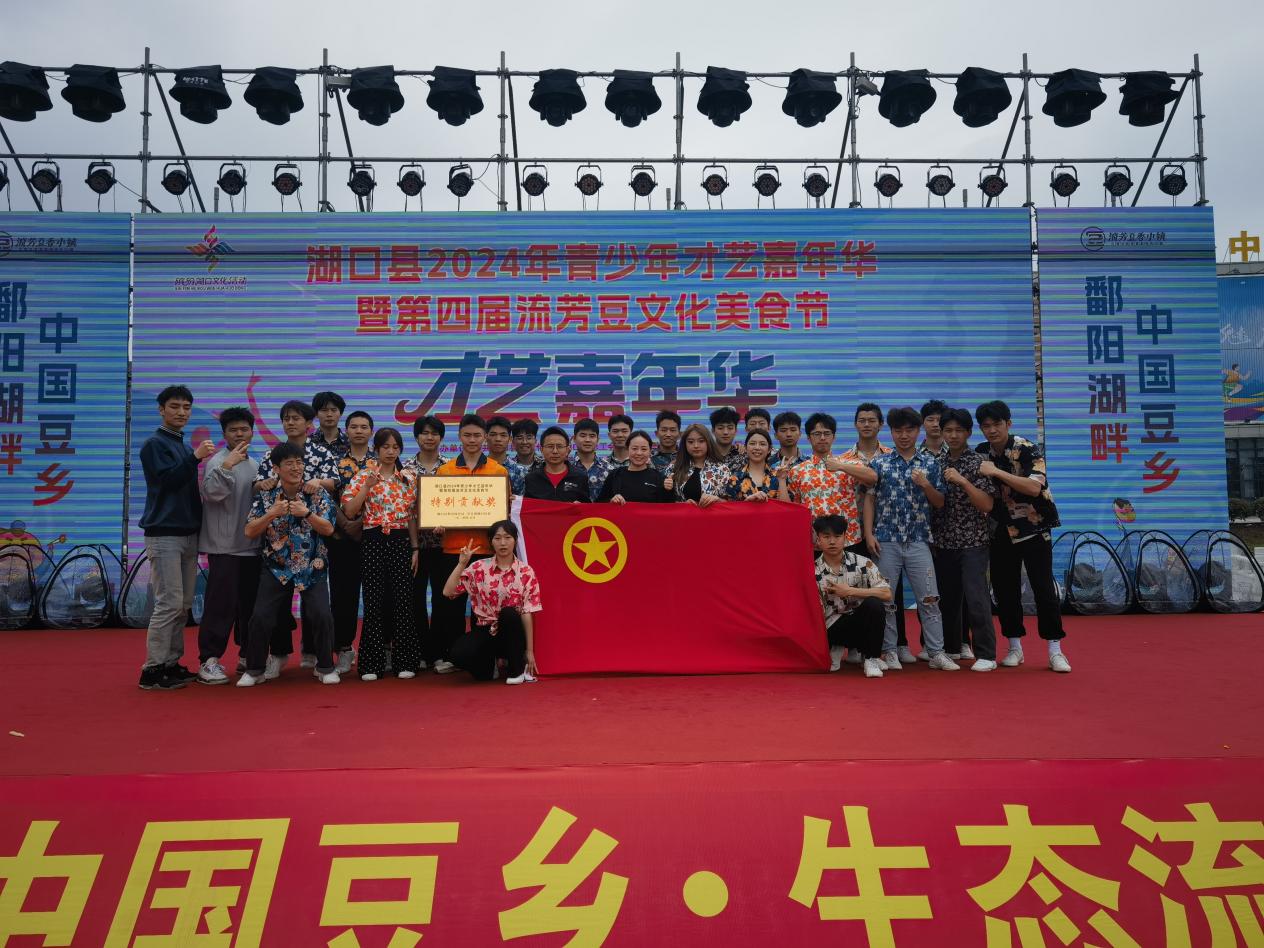 2024年5月1日,体育学院健身指导与管理专业表演队(以下简称“表演队”)应邀参加江西省九江市湖口县隆重举办的青少年才艺嘉年华暨第四届流芳豆文化美食节活动。