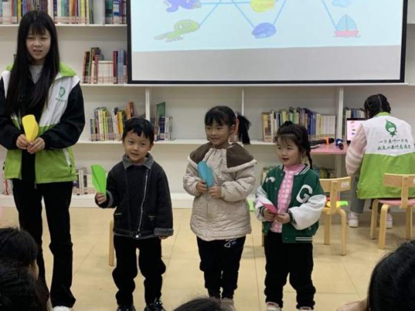 在活动正式开始前,孩子们陆续入场,由志愿者们带领孩子们共同阅读绘本,志愿者们的生动讲述,让孩子们沉浸在有趣的故事当中,让孩子充分感受到阅读带来的快乐。