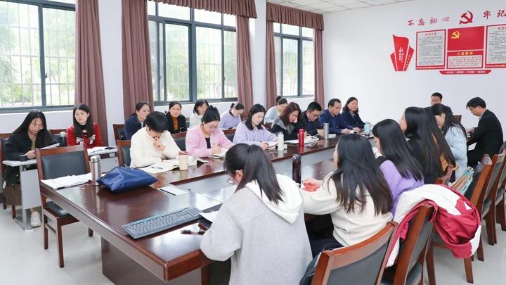 备课会聚焦提升教学实效,议程充实。会议首先由李文琪、蔡萌两位老师就“专题四:坚持党的全面领导”的教学实施情况进行复盘,分享了亮点做法、学生反馈与难点问题,为后续教学提供了重要参考。随后,邹海林老师围绕“专题五:坚持以人民为中心”进行了系统说课,从教学目标、重难点到针对高职学生的教学设计均作了详细阐述。在集体研讨环节,孔维丽、樊云青等多位教师结合授课实际,聚焦学生可能存在的认知困惑,共同探讨了如何将“以人民为中心”的理论讲深、讲透、讲活,强调需运用鲜活案例并紧密结合学生专业背景。国赛获奖教师徐帅分享了以赛促教的经验,展示了如何将竞赛中的优质教学方法与信息化手段有效融入日常课堂。