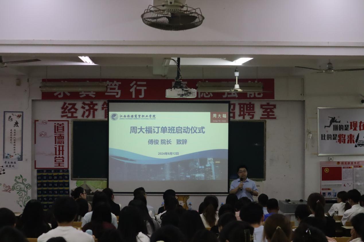 为促进校企合作的深度交流,推动产教融合的深入发展,营造校企共育的良好氛围,保证我院学生能够有效对接工作岗位,满足实际岗位需求,了解新技术新工艺,连锁与营销教研室于6月12日在五教二阶教室,成功举办了周大福订单班的启动仪式。